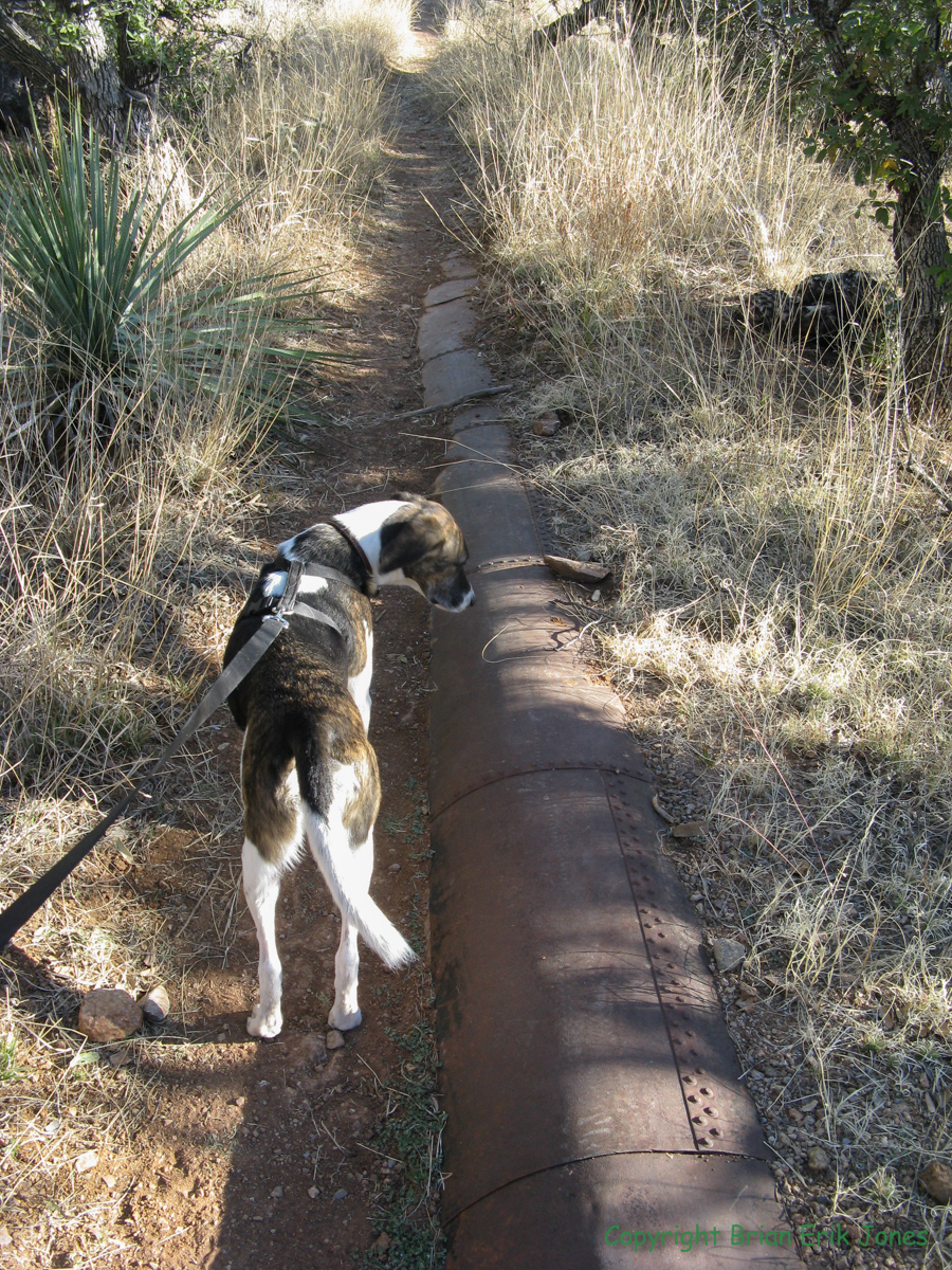 A little more than three miles in we came to Kentucky Camp, which is a neat little place to take a break from the trail. There are a number of historic buildings and artifacts on the property to check out. You can even rent one of the cabins there. It would be a pretty cool place to spend the night, I imagine. Kentucky camp was once part of a mining operation under the Santa Rita Water and Mining Company. There was a pretty extensive and elaborate engineering works to get water from the mountains down to Kentucky Camp to support the mining operation. Ultimately though, the operation wasn't very successful.