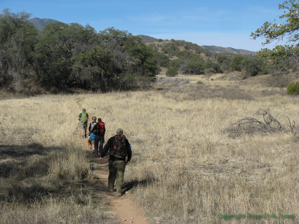 And while I don't know what the AZT segment we bypassed looked like, I was really glad that we took the detour, because it took us down an amazing little valley with massive oak trees. It was extremely picturesque and a very pleasant stroll. After climbing up some low hills and crossing some rollers, we dropped back down again and started the descent to my car. It was another beautiful little valley with more cool old oak trees. I really want to come back and spend some more time out there.