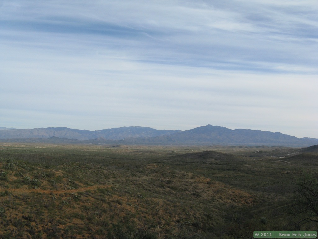 It's easy terrain to hike through, rolling hills with a smooth trail. Passage 7 has great views of the Rincon Mountains, but there isn't much of note along this segment. It's just a vry nice hike through very typical, beautiful desert scrub. Just about all we saw in the way of wildlife were birds and a jackrabbit.