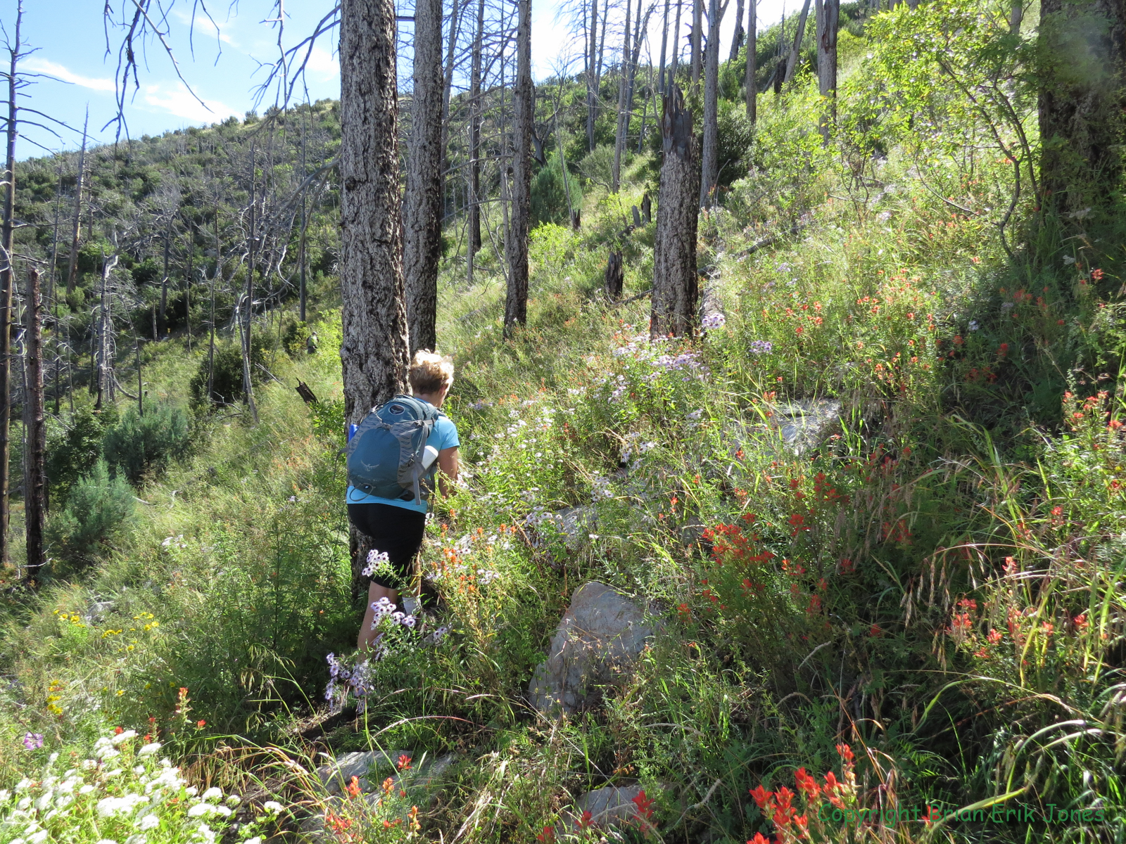 We dropped through the fire scarred (but still pretty) section fairly quickly and continued our relatively moderate descent.