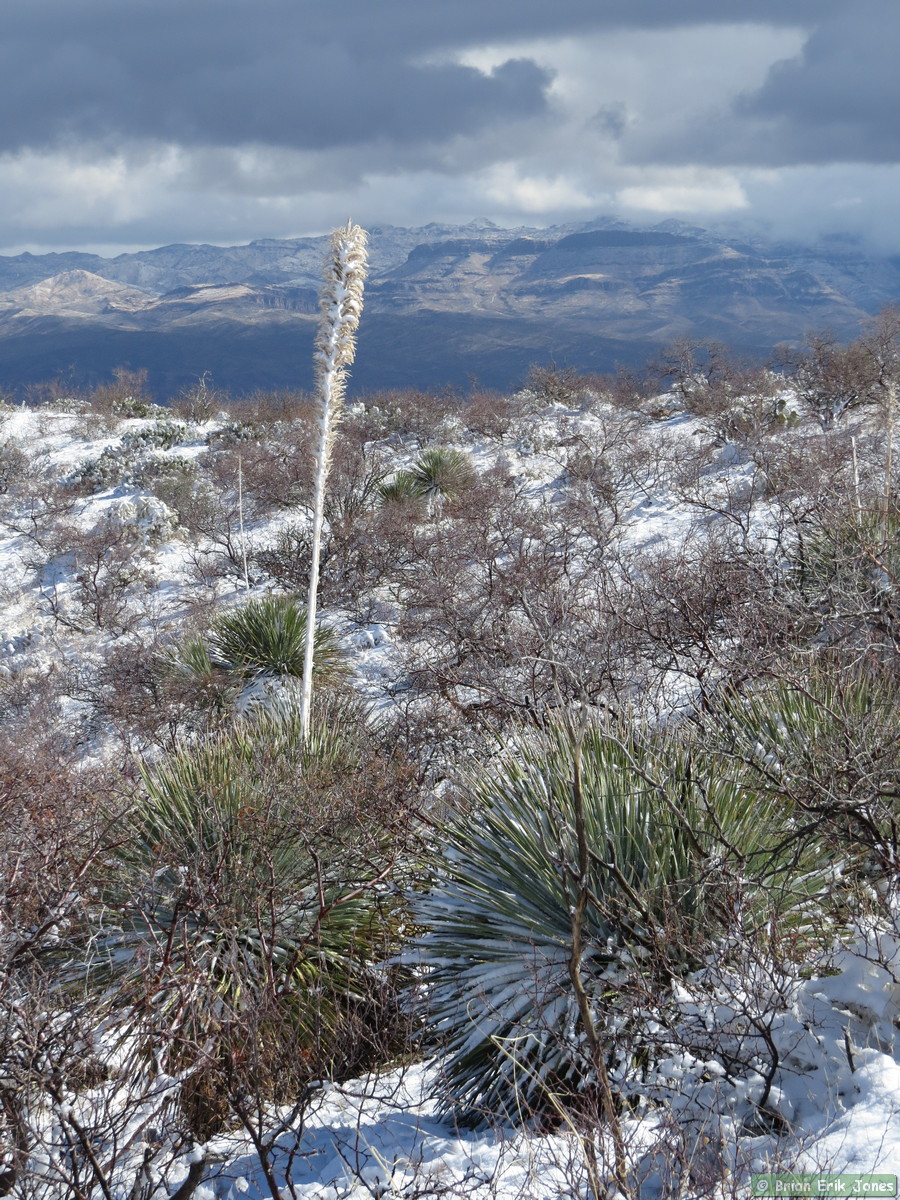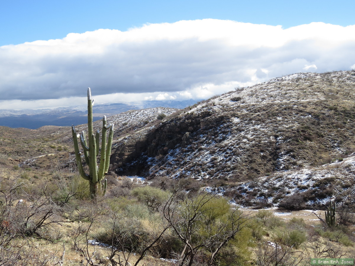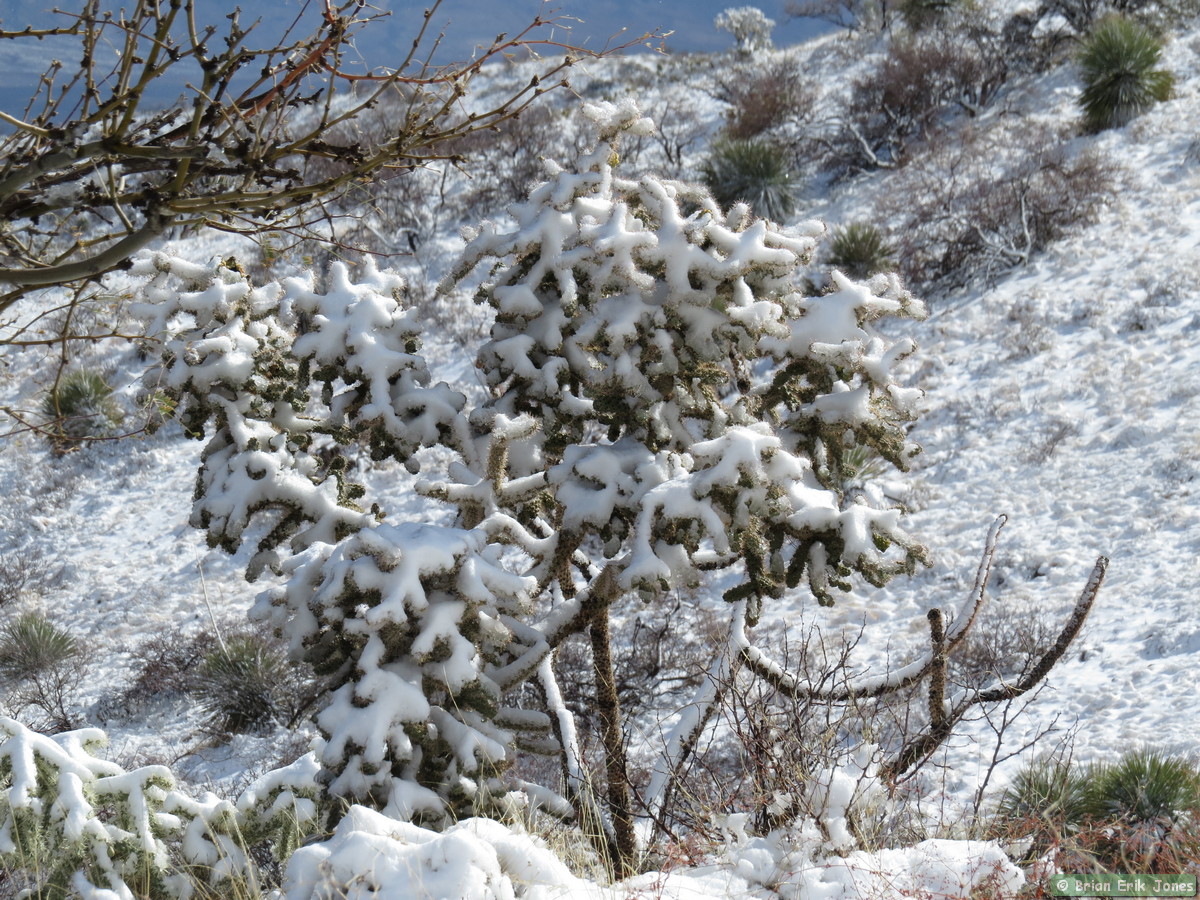 The snow slowed us down a little, as much because we were admiring it as because it made the trail a bit slippery. There’s something magical about a snow covered desert landscape. I would have liked to have stopped a lot more to take pictures and just enjoy the scenery, but we had to cover a lot of ground so I forced myself to keep moving most of the time.
