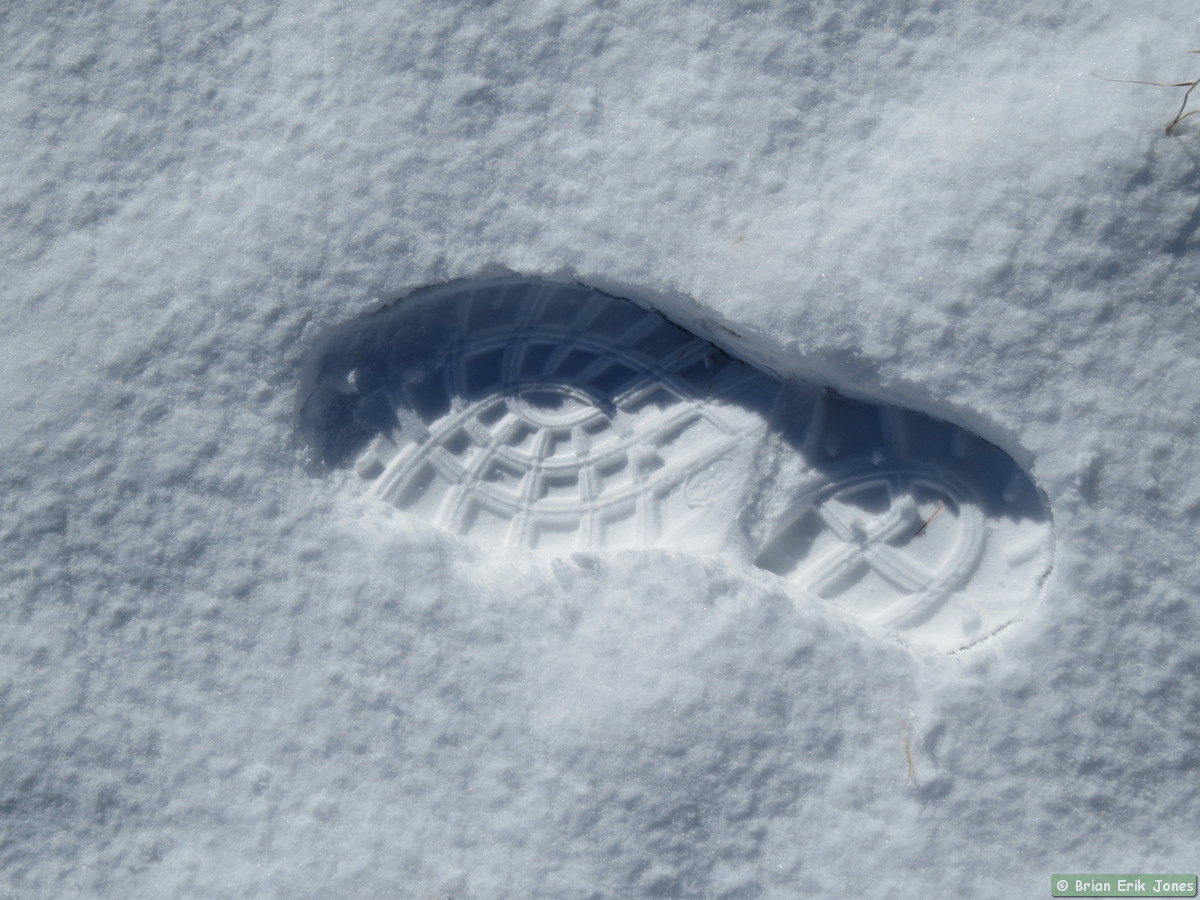 It was around nine o’clock by the time we got the shuttle set up and started hiking. The clouds had largely cleared off so it was bright, but also windy as heck, with 2-3 inches of snow on the ground. We were in for a fairly unique perspective on Passage 14.