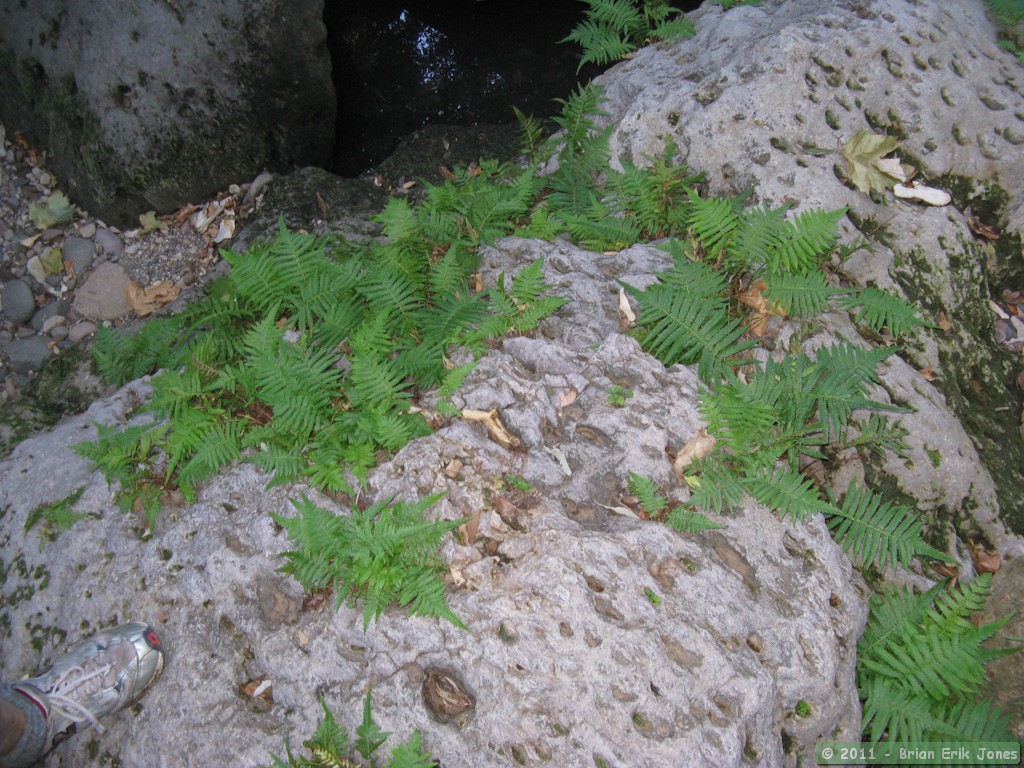 All this was arranged amidst rock-lined pools of glassy dark water, disturbed occasionally by a leopard frog leaping to safety at my approach.