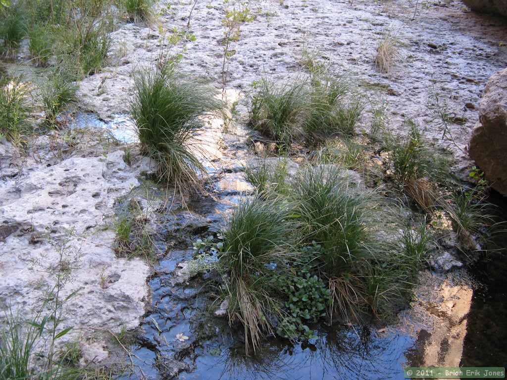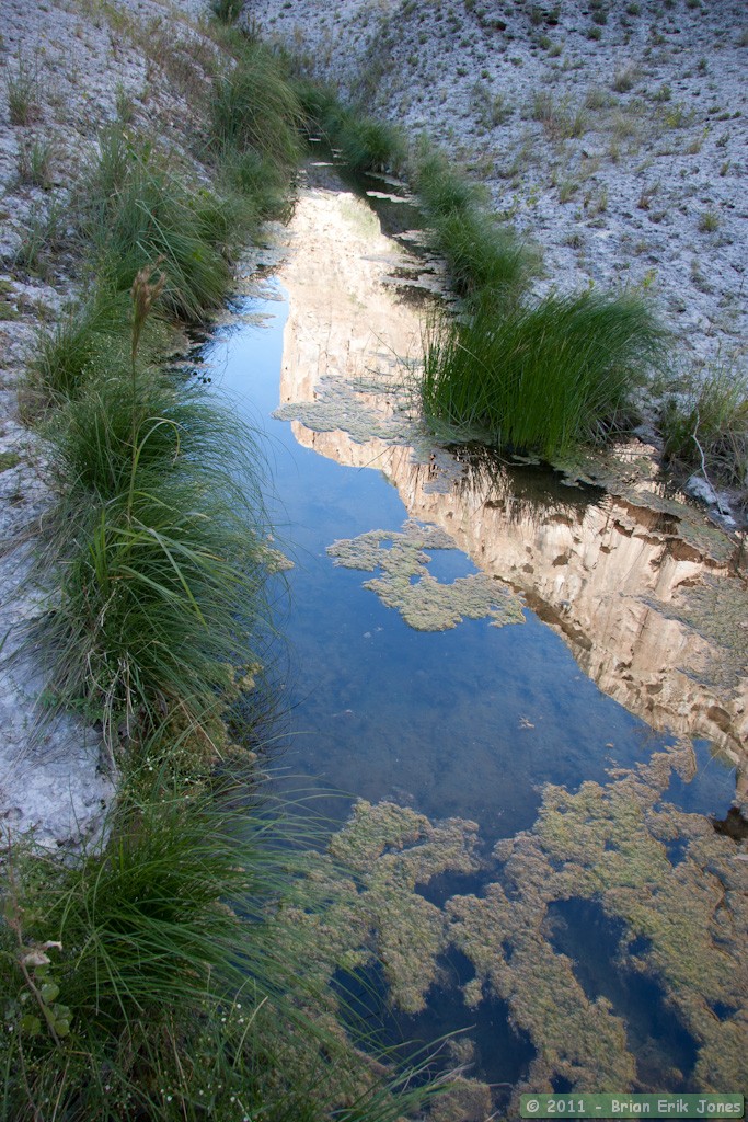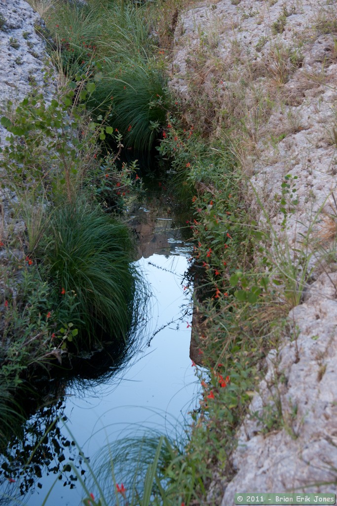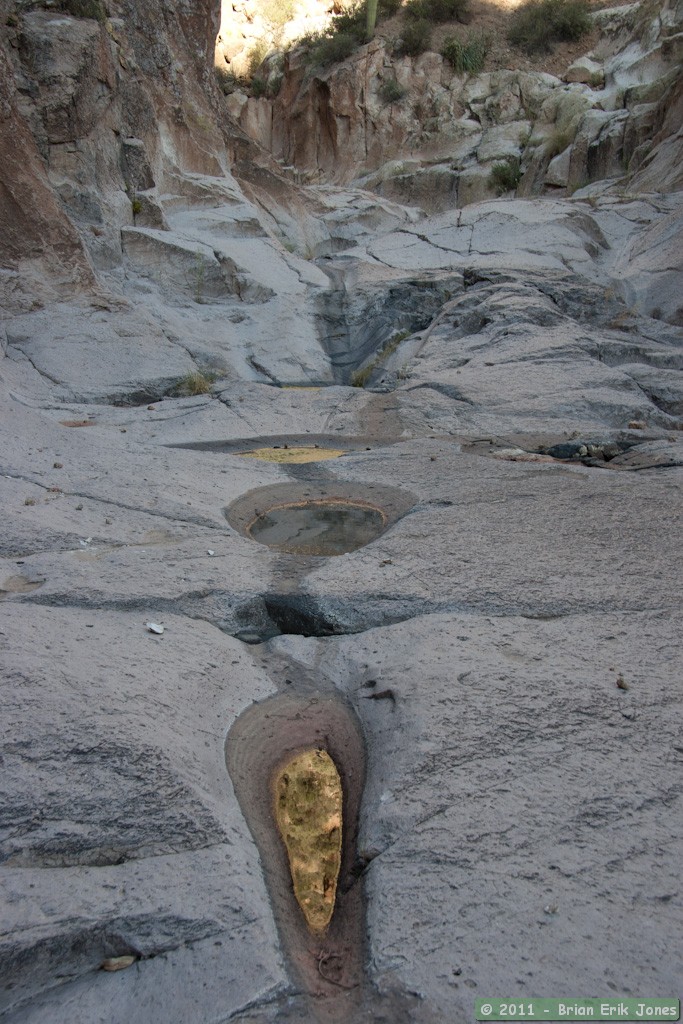 After climbing up a gentle pour-off, I pulled my tripod out and started taking photos of some interesting depressions in the rock that were lined with concentric evaporation rings.