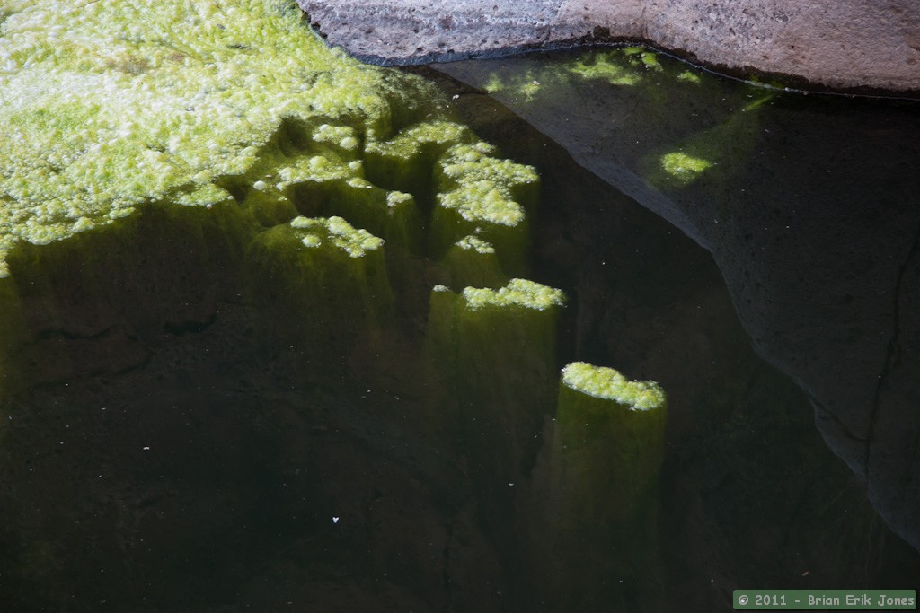 I also found some interesting algae that appeared to be platforms rooted in the black depths of the pools it grew in.