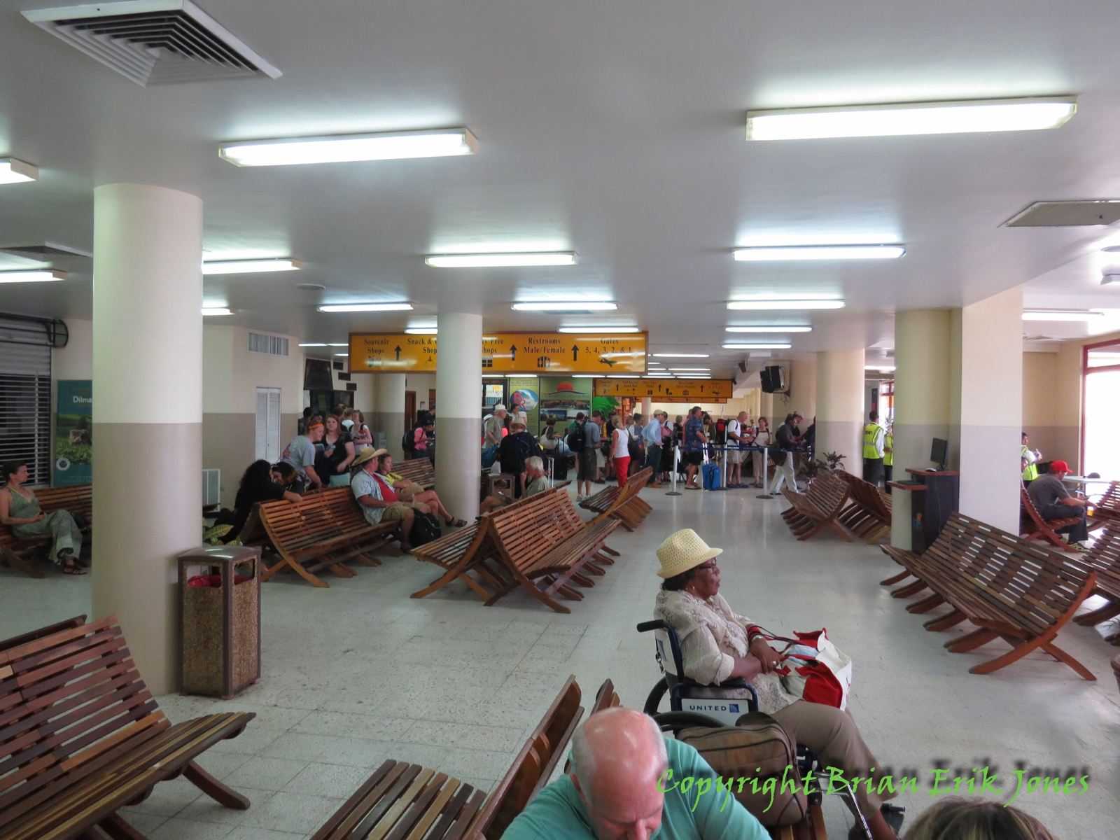 As people slowly got their baggage and exited the plane, I kept looking at my watch. Once we got off the plane, Shan and I raced around everyone for the fairly lengthy walk to customs and immigration. By having one of our forms already completed, and by completing the other form while standing in line, our race to the line allowed us to move through pretty quickly. After clearing immigration, there were guys with luggage carts that basically grabbed our bags and put them on the cart to take them to our connection.